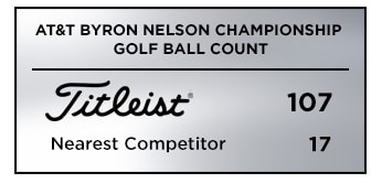 Titleist was the overwhelming golf ball choice at the AT&T Byron Nelson Championship with 107 players in the field of 156 trusting a Titleist Pro V1 or Pro V1x golf ball for their success. That’s more than six times the nearest competitor with 17 and more than all competitors combined.