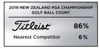 Titleist was the most played golf ball at the New Zealand PGA Championship with 86% of players in the field of 132 (113 players) trusting their success to a Pro V1 or Pro V1x. That’s more than 14 times the nearest competitor with 6% (8 players).
