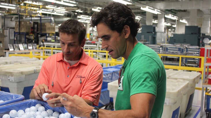 Check out the slideshow below for a look at Rafa’s day behind-the-scenes at Titleist Golf Ball R&D and Ball Plant 3.