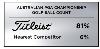 Titleist was the golf ball of choice at the Australian PGA Championship, with 81% of players (126 players in the field of 156) relying on a Pro V1 or Pro V1x golf ball, more than twelve times the nearest competitor with 6% (10 players) and more than all competitors combined.