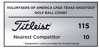 Titleist was the most played golf ball at the Volunteers of America LPGA Texas Shootout with 115 players trusting a Pro V1 or Pro V1x, more than eleven times the nearest competitor with 10.