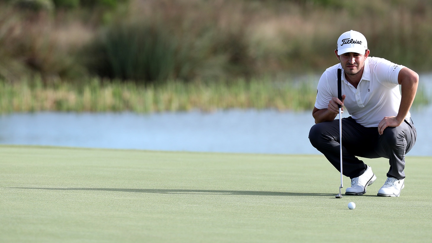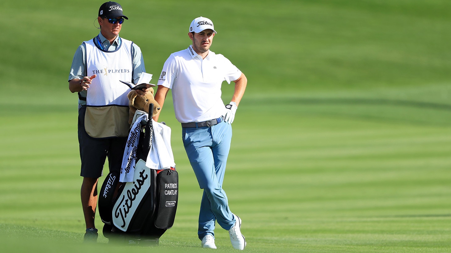 Patrick Cantlay: New 2019 Pro V1x golf ball, 917 D2 (9.5°) driver, 915 F (15°) fairway metal, 816 H2 hybrid (21°), 718 AP2 (4-PW) irons, Vokey Design SM5 sand (54.10 S Grind), SM6 sand (56.08 M Grind), SM7 lob (62.08 L Grind) wedges, Scotty Cameron GSS putter.
