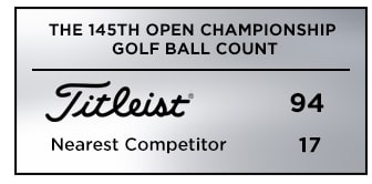 THE COUNTS: Titleist was the top golf ball choice at the third major of the year with 94 players trusting a Pro V1 or Pro V1x , more than five times the nearest competitor with 17 and more than all competitors combined.