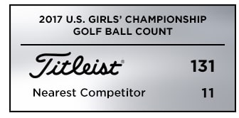 And as was the case at last week's U.S. Junior Amateur Championship, Titleist is once again the overwhelming golf ball of choice at the U.S. Girls' Junior. As Boone Valley Golf Club hosts a combination of stroke play and match play competition, 131 players in the field of 156 are playing a Pro V1 or Pro V1x. That's nearly 12 times the nearest competitor with 11 and more than all competitors combined.