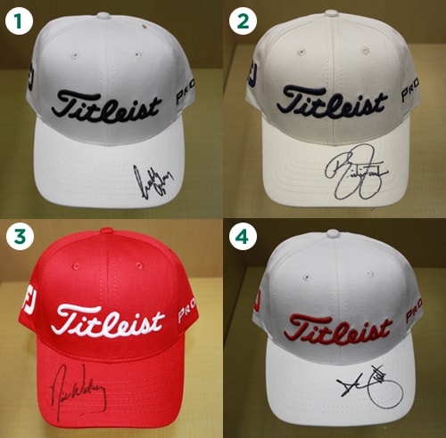 To Enter: All you need to do is correctly name the four players whose signatures appear on the caps in the photograph in order from 1 to 4, in the comments section below. Here's a tip- All 4 players are playing this week!