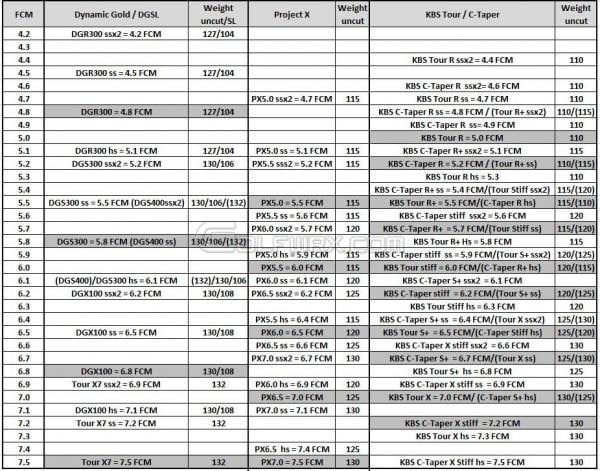 I have 712 MBs with C-Taper 130 Stiff for the 3i, 4i, & 5i; and C-Taper XStiff SSx1 for 6i-9i. For me there is a huge difference in feel and flight between the Project X and KNS C-Tapers. Above is a spreadsheet of shafts with their associated flex (cpm) that I downloaded from GolfWRX - hopefully as useful for you as it was for me. There was also a post about the comparison between these 2 shafts in a 712MB about 2 months ago if you want more info, just search '712MB C-Taper Project X'.