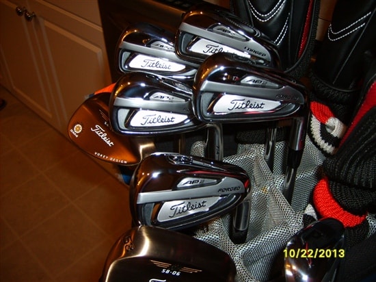 Well today my golf pro at my country club called me to come and pick up my irons and wedges. I was fitted on the 11th of Nov, so less than 2 weeks to show up. I already purchased the new 913D2 driver and 913F fairway woods both 3 and 5, and the 913H 21* hybrid. I also have a 2013 California Monterey. I was all about TM R1 and Rocketbladez. But my Pro at the club I belong to is relatively a new hire from Nebraska and he is a Titleist Rep and certified fitter. So he came up with having 5 volunteers to become a Team Titleist rep for the club. So far I am the only one that has volunteered. I will receive my new Titleist cart bag stitched with my club name and logo and my nickname this Friday, then I will be fully equipped all Titleist. The driver is phenomenal and so is the fairway and hybrid. I can not wait until tomorrow to use the irons for the first time. I am a 12 hdcp and I went with the 714 AP2's and Vokey SM4 oil can wedges, 50/54/58. The Pro ordered the irons with DG SL S300 shafts with 2* upright. The woods all have the Diamana S62 and S72 Reg flex shafts. I am a disabled vet from the Iraq War and have serious neck and back injuries. I was before I got injured using all stiff shafts in my tms, but with my injuries I just could not use the stiff flex any longer. I was surprised that my Pro fitted me with stiff iron shafts vs my reg flex irons. But he expresses that it is necessary to use stiff flex due to my swing tempo. But my woods are to stay reg flex as I have a much slower and controled tempo with the woods. I have also switched the Pro V1x ball, that in itself was a smart move and experience vs my previous TM TP5 ball.