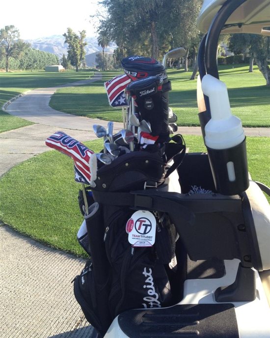 A quick pic of my gear during a recent range session... Yes, snow on the ground. Yes, it was below freezing. Full disclosure, I was in a heated bay. I'll grab some more pics to pull together a nice tour this weekend. I have that exact same bag Mike, I love it and want to get Team Titleist embroidered on to it like yours.