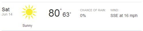 Might be a little windy, but no rain chance!!! As of right now anyway.