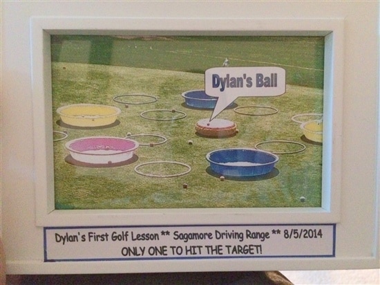 My 5 year old son Dylan had his first golf lesson with First Tee yesterday..  He made me proud, only one to hit the target in his group.  So my mom printed the picture and framed it.  My son couldn't stop looking at it last night and can't wait for his next lesson which is today.