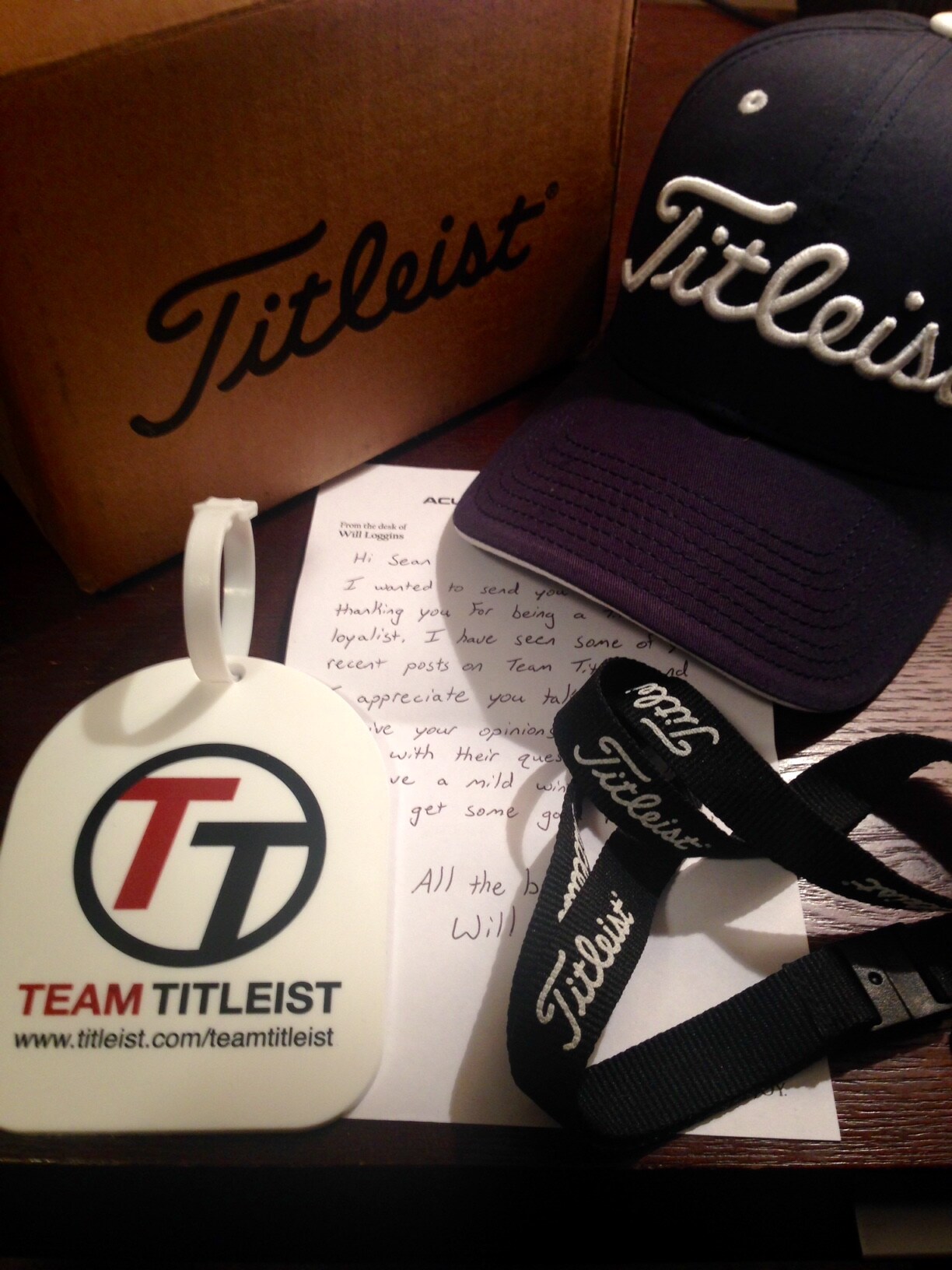 Thank you so very much Mr.. Will Loggins for the #Titleist goodies and #TeamTitleist bag tag! I truly appreciate the personal note.  It was an absolute surprise to receive a package with the Titleist symbol of excellence emblazoned on the side.  You just know its going to be great!  I don't play a full complement of or dress head-to-toe in Titleist because I'm paid to do so...I do it because of confidence in excellence and performance!  Trust and Loyalty Forever! Forever Titleist! Thank you very much Titleist!
