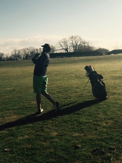 2nd hole, Par 5 Josh swinging away: