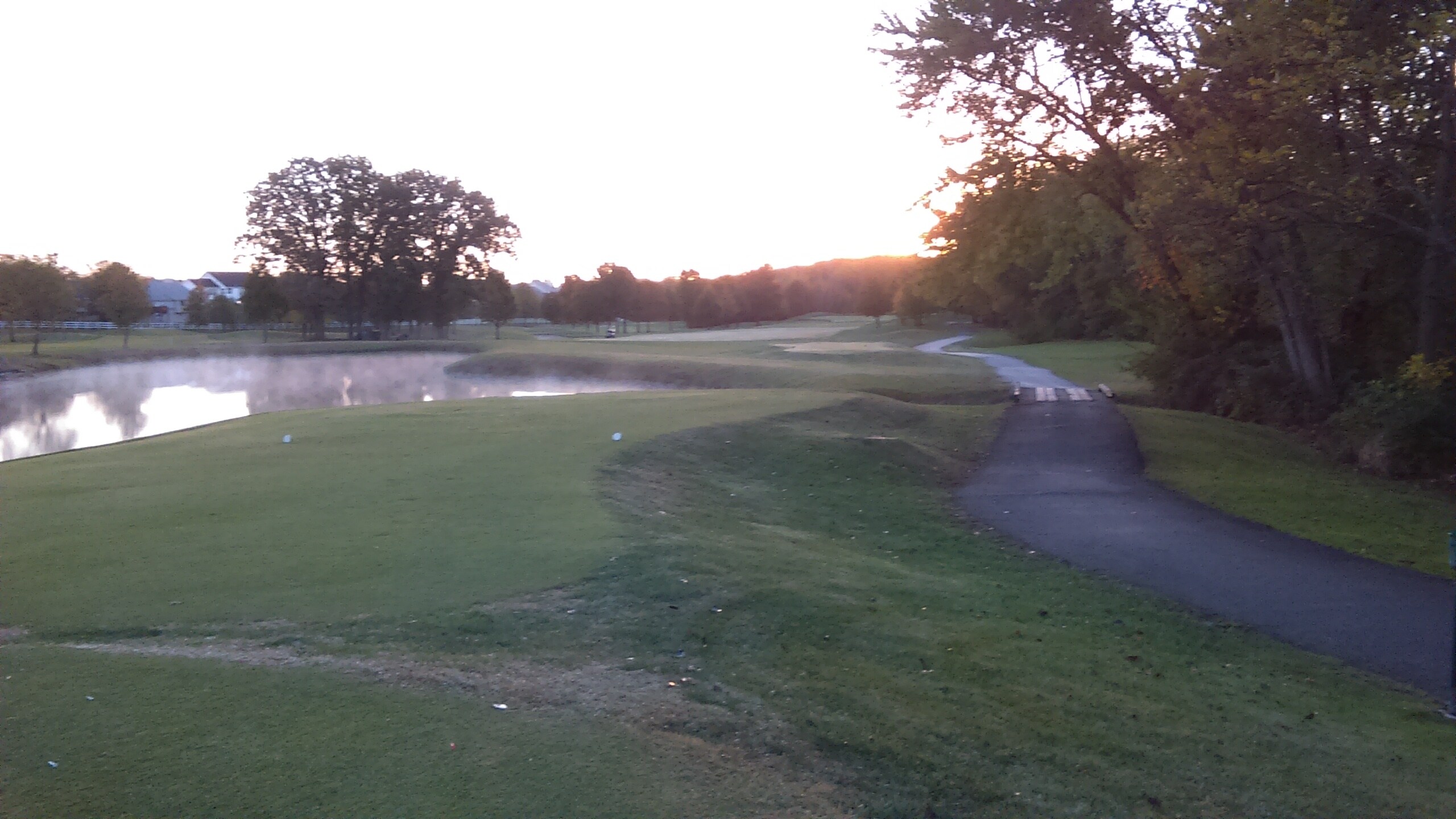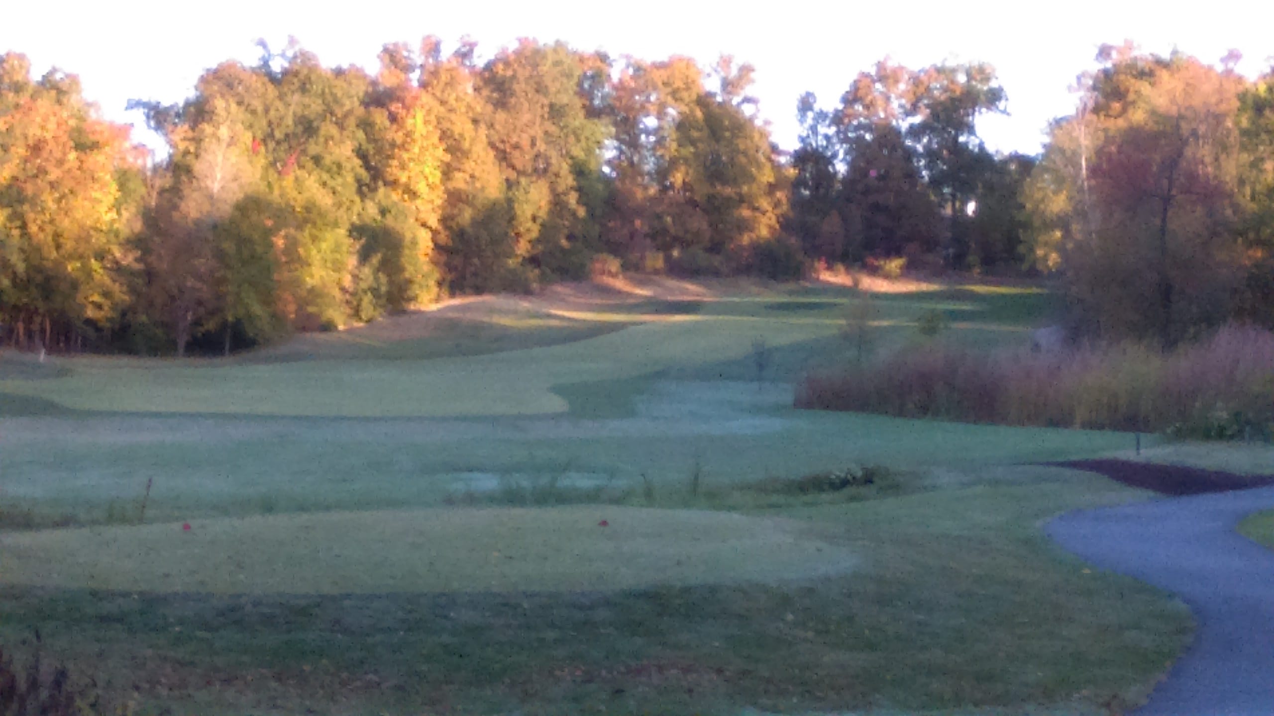 Nothing spectacular, just the first guy off this morning at 7:20 on one of the courses close to me (The Falls at Turtle Creek). Waiting on maintenance crew to finish raking the bunker and blow leaves off the fairway. Temp was cool (47), but it's great being first person out because I can usually finish 18 in about 2.5 hrs.