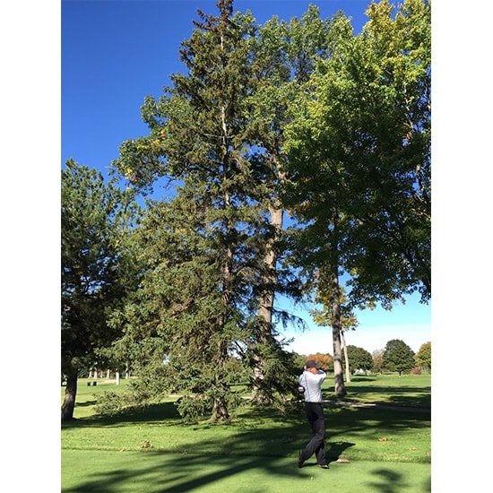 Hey Dr. K - I played Inverness Club in Toledo, Ohio, with my family and friends this weekend. The course looked pristine, especially for this time of year. The club recently refurbished all of the bunkers on the course. They looked pretty daunting, but great, if you ask me! Above is right of the fairway on No. 10 and below are right side fairway bunkers on No. 18. Above: From the par-4, 428 yard No. 4 silver tee box. Above: My dad on No. 8 tee, where behind him you see the "Hinkle Tree" from the 1979 U.S. Open. Hope everyone is having a great fall season! Abby Abby LiebenthalTeam Titleist Staff