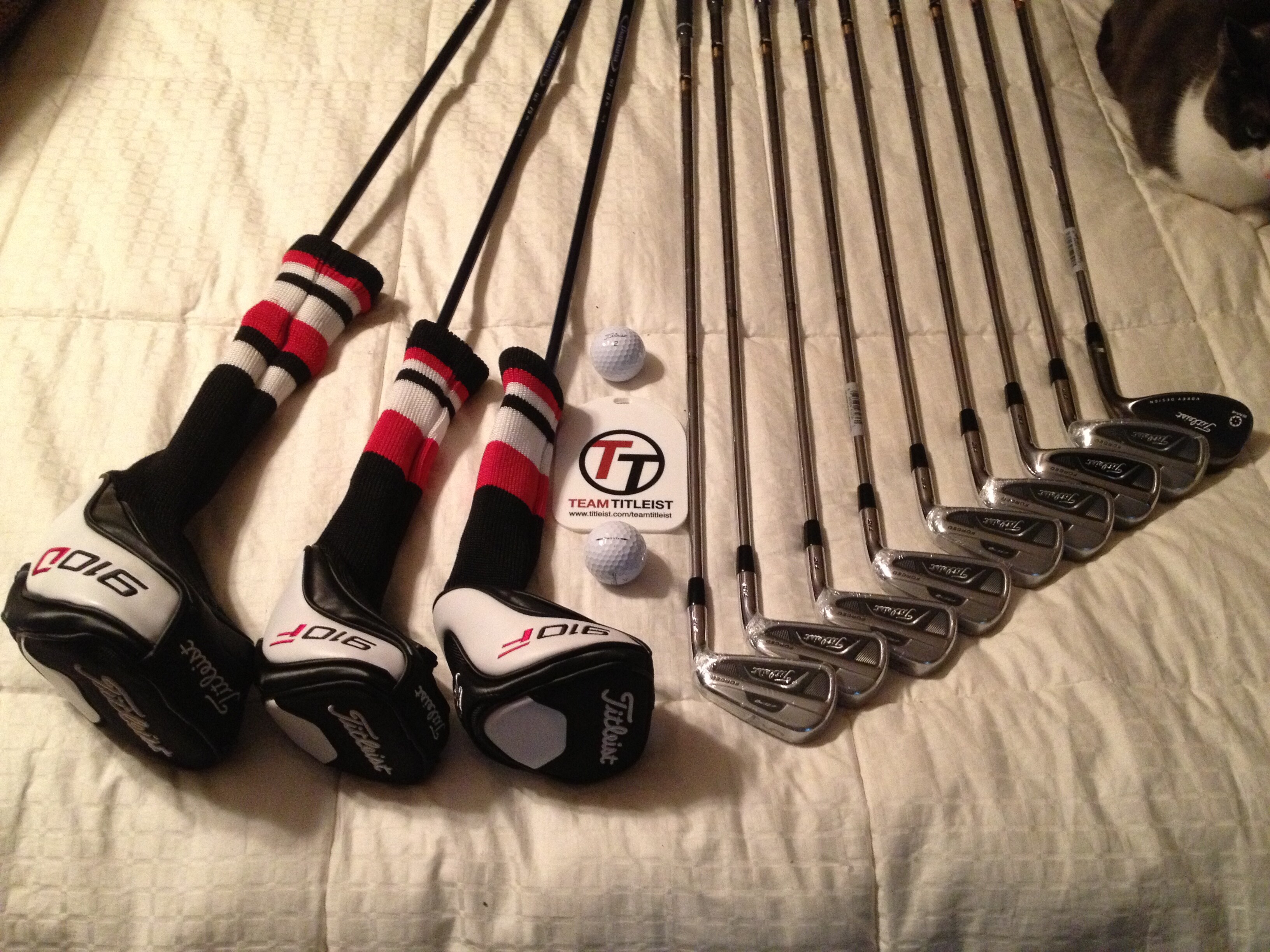 Thank you for the TT Tag Titleist.....In my house waiting for the set to be complete.....Mid -Staff bag,54* SM4 Black Nickel and Scotty Sea Mist Cali 1.5 and say bye to double digit index :)....910D 10.5 at A1 w/RIP60S will stay in bag.....Don't mess with perfection.......New F's and Irons will complete my advancement toward single index....My cat is support...