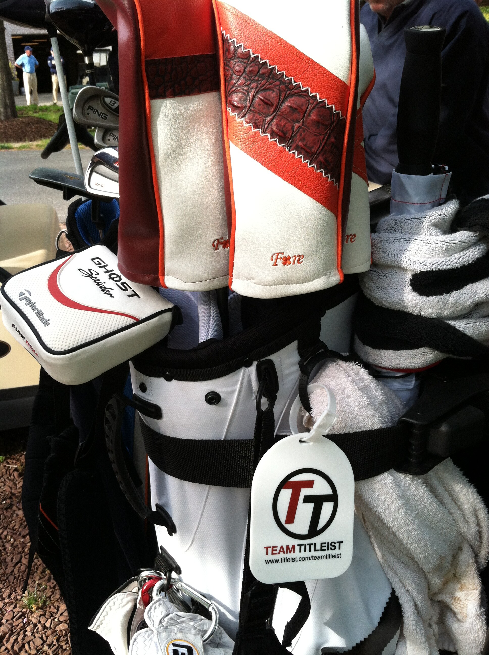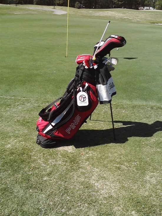 tt titleist tag saying hello in petersburg va at dogwood trace. a tt bag is missing in this picture;-)