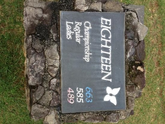 Just a short little 663 yard finishing hole! Driver, hybrid, 60 degree wedge to the green from the back baby (not enough guts to go for the green in two... maybe with better weather...)