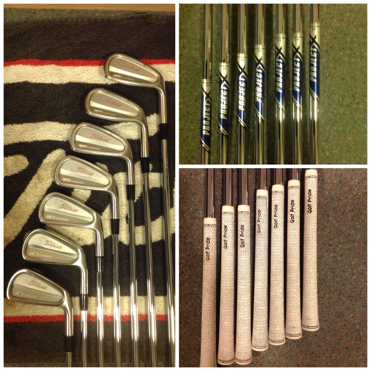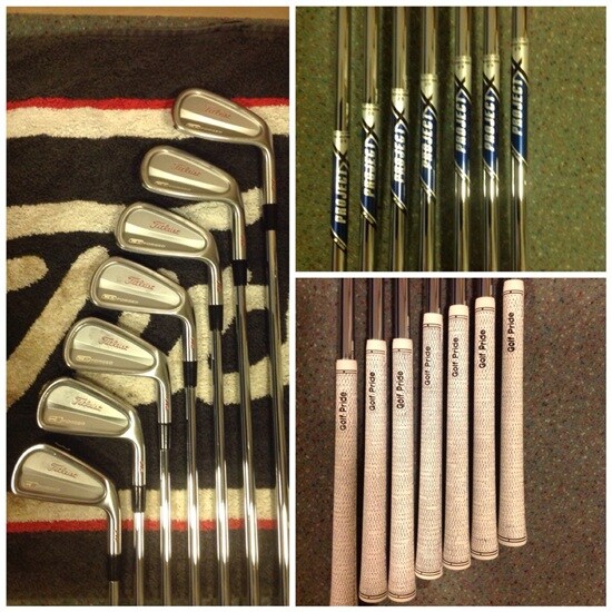 3-9: Titleist CB with Project X 6.0 Hard Stepped Shafts custom white and red paint fill and Golf Pride BCT Full Cord White Grips +2 Layers