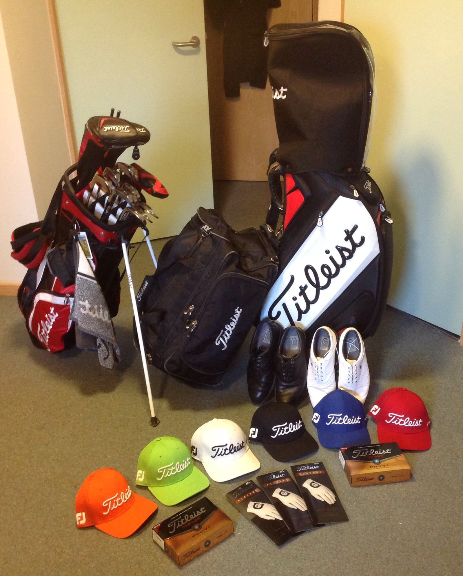 last pic is of most of my Titleist gear few bits missing...such as new FJ Contours and my Practice Shag Bag and FJ Polo.